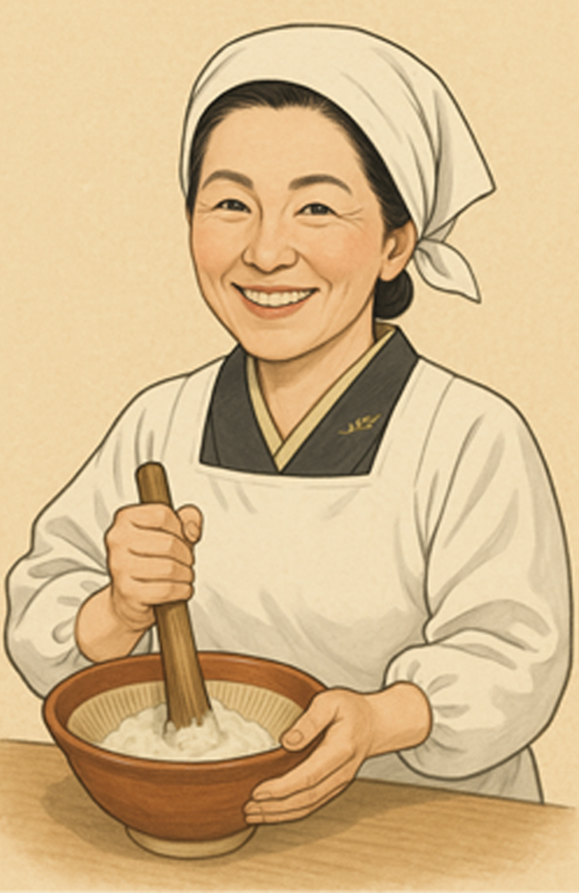 野菜ソムリエ(崎田光子)が昆布と鰹節の一番出汁を使って自然薯の風味を壊さずに仕上げました。
