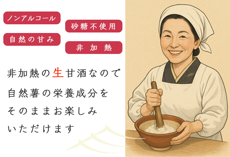 非加熱の生甘酒なので自然薯の栄養成分をそのままお楽しみいただけます。